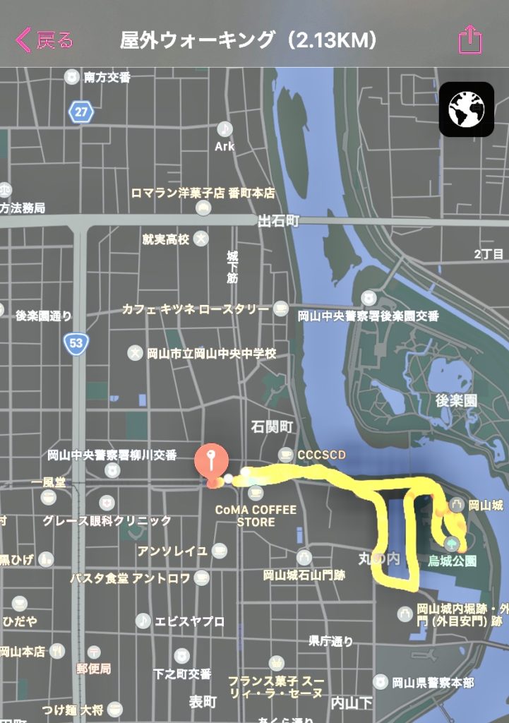 というわけで今日は烏城岡山城を見にいく行程をウォーキング に充てました。