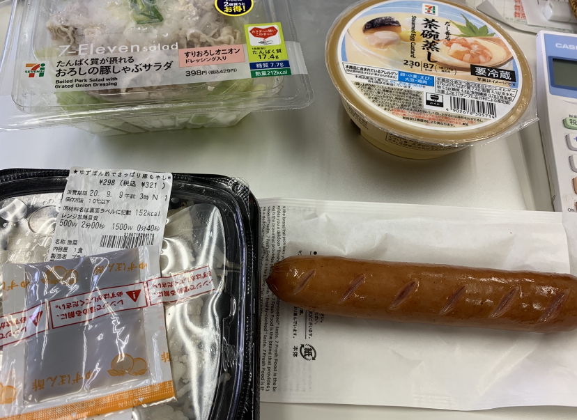 今日は昼食ではじめて茶碗蒸しを食べました。意外と低カロリーでお腹が一杯になりました。また普段食べている粗挽きソーセージが売り切れだったため、ビッグポークを食べましたが、これに関しては思ったより高脂質と高カロリーだったため、食べるならいつもの「薫製粗挽きソーセージ」がいいかなーと思います。