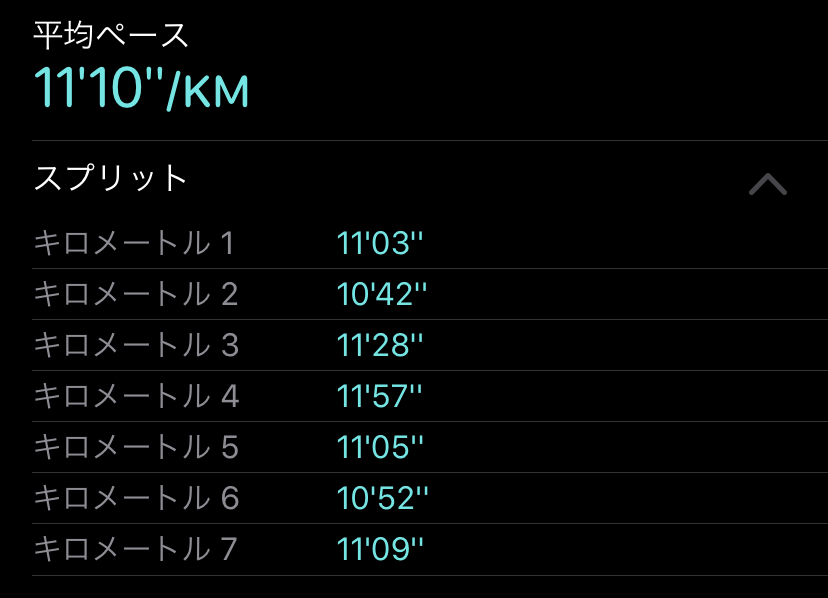 1キロごとのスプリットもいつもより1分ほど遅めです。