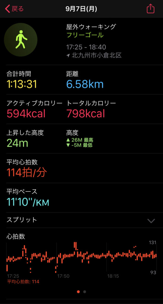 スプリットがいつもより遅かったこともあり心拍数の平均が114と普通に歩くのとあまり変わらない結果となりました。この心拍数だと全くきつくはありませんが、筋肉の張りがきいて痛みに悩まされました。明日に引きずらないといいのですが。
