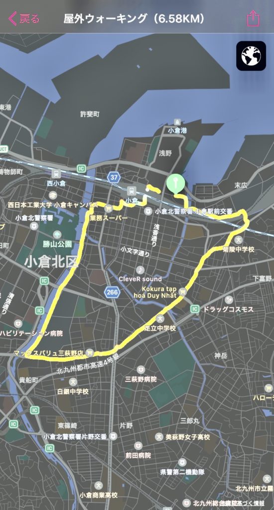 歩行コース自体は序盤の踏切ひとつ分の距離が延びたこと以外はいつもと同じコースです。が、足の痛みが終始気になってしまい、歩ききることを目標にスピードは度外視でコースを回りました。帰宅後はお風呂でマッサージをして、湿布を貼って筋肉を休めます。