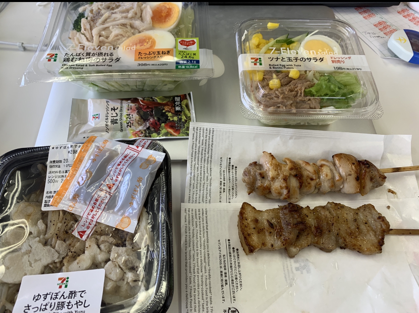 いつも昼食で食べている粗挽きソーセージを朝食で食べたので、お昼は焼き鳥にした。豚バラは脂多そうだなーと思ったけど、やはり12gもあった。品数が多かったこともあってお腹はいっぱいになった。