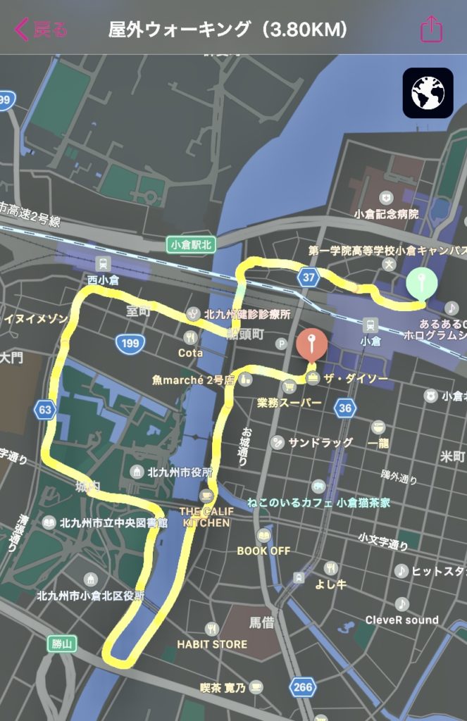小倉駅に着いて「せっかく外に出たのだから、歩いてから買い物しよう」と急きょ予定を変更しました。そのため距離スプリットに関してはいつもより緩やかです。