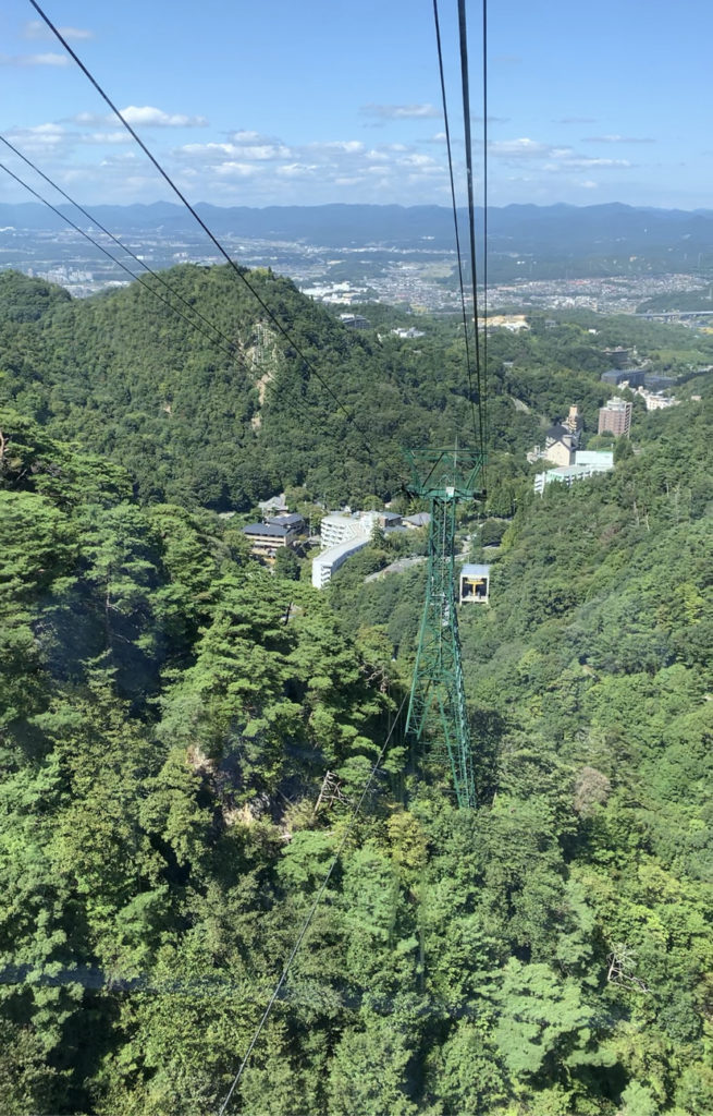 12分の空の旅を満喫して、無事有馬温泉駅に到着。帰路に着くこととなりました。今回4連休を利用して有馬温泉と六甲山の2カ所を訪問しました。テレビの報道などで観光地に人が来なくて危機に瀕している、そんなニュースも目にしてはいましたが、有馬温泉は盛況でした。まだ外国人観光客はほぼゼロの状態ですので元に戻ったとは言えないとは思いますが、GOTOトラベルのおかげで人は戻りつつあるのかも、そんなことを感じた連休となりました。