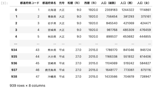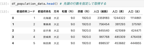 | df_population_data = pd.read_csv(‘data.csv’, encoding=’shift-jis’) |