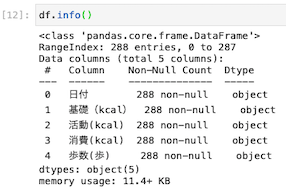 | import pandas as pd import datetime df = pd.read_csv(‘shokuji_data.csv’, encoding=’utf-8) df |