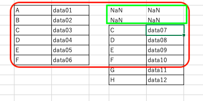 共通する部分はそのままに、欠損箇所はNaNが表示される。
