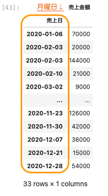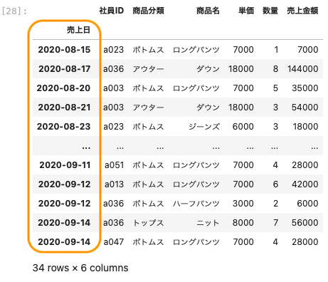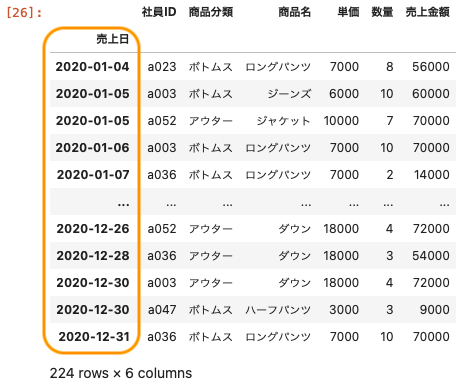 df [ ‘ 売上日 ‘ ]