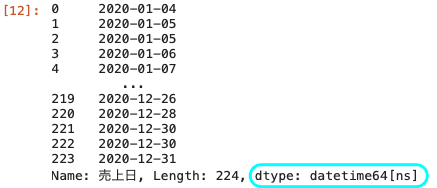df [ ‘売上日 ‘ ] = pd.to_datetime ( df [ ‘ 売上日 ‘ ] )