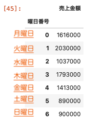 df_4 . index . name = ‘ 曜日番号 ‘