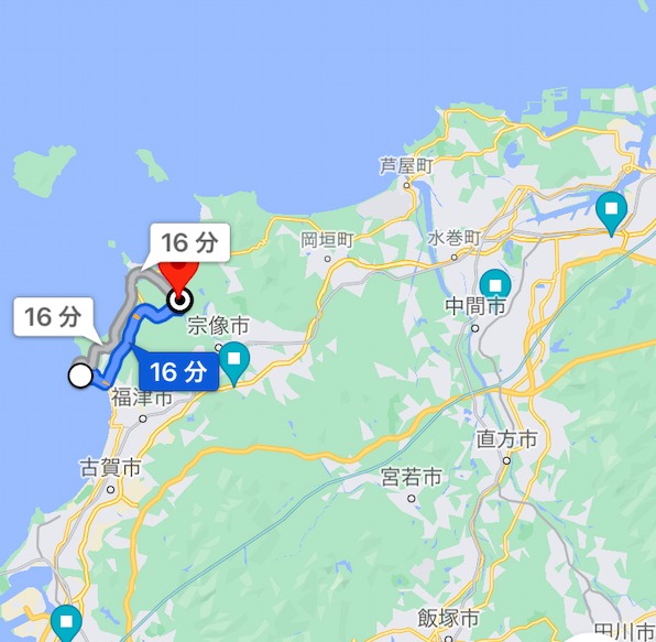 昨日は宗像市にある宗像大社に到達したので、ここが出発地点。