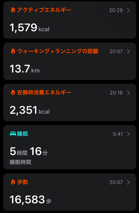 今日は朝昼夜と3回に分けて良い塩梅で歩くことができたので、距離的にはもうちょい行けた気もしますが、概ね満足しています。