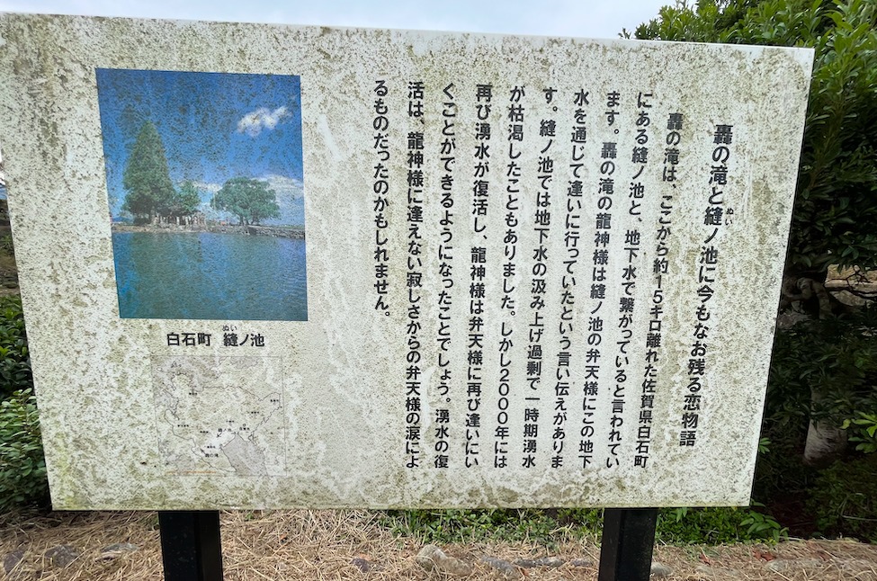 当初は訪問予定がなかったのですが、嬉野温泉に行った際に訪れた轟の滝と縫ノ池の関係性を知ることができたのは、自分にとっては何かしらのご縁があったのではないかと感じています。