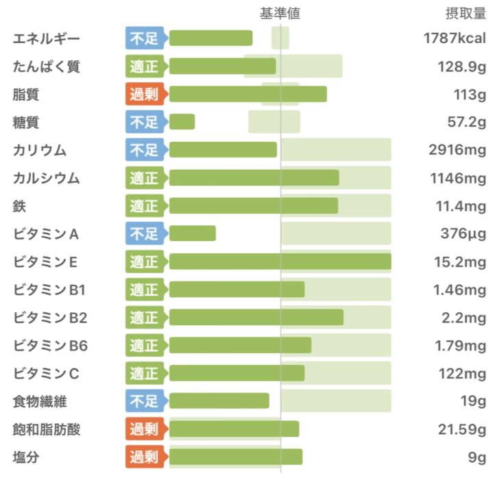 さてさて、昨日の1日栄養グラフ、しっかり記録されててほんとに素晴らしい!